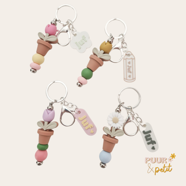 Sleutelhangers voor de juf stijlvol, schattig én praktisch. Een klein gebaar met een grote glimlach.