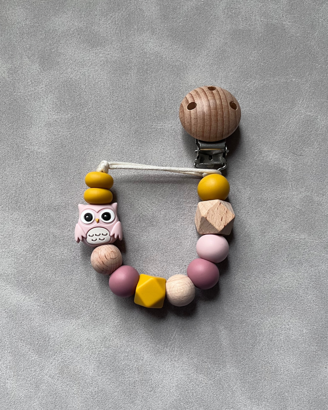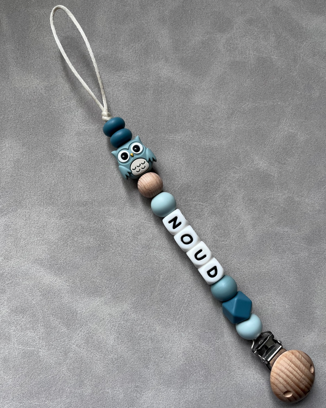 Dit handgemaakte speenkoord met uil is niet alleen een lief detail, maar ook superpraktisch. Zo raakt de speen minder snel kwijt én ziet je kleintje er extra cute uit.